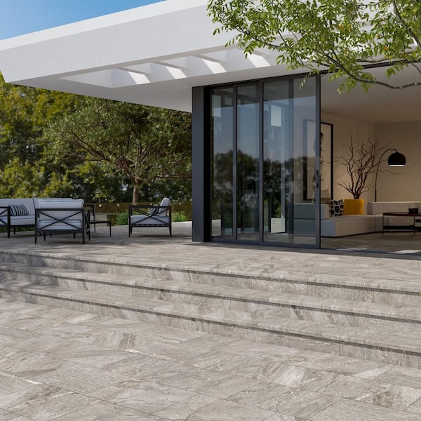 • Matte gray stone look porcelain floor and wall tile