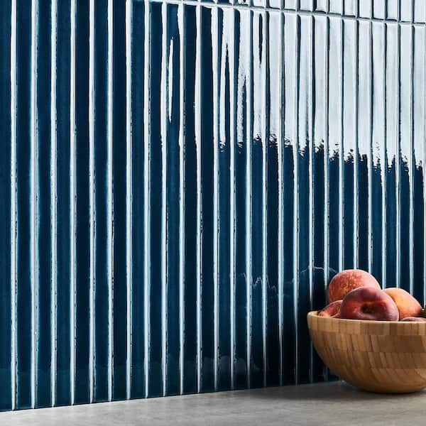 Vistaio Sapphire Blue 5.27 in. x 17.71 in. Glossy Ceramic Mosaic Wall Tile (0.64 sq. ft./each)