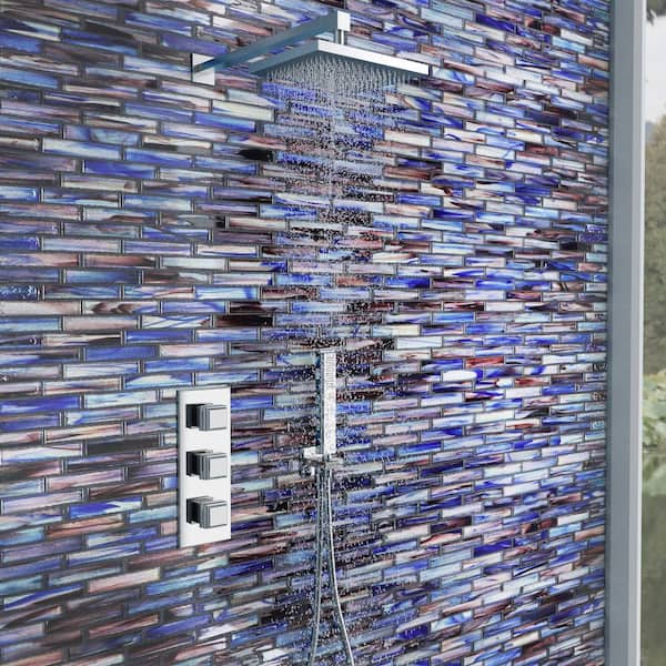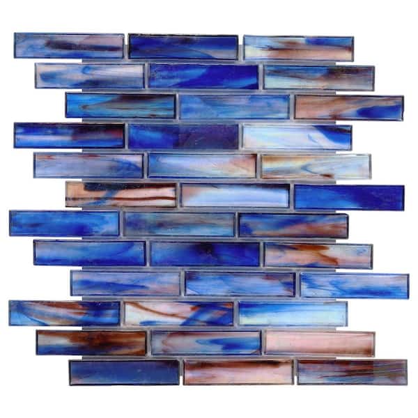 Spa inspired iridescent polished glass mosaic w/ brick pattern