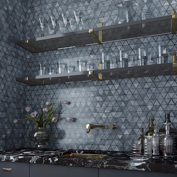 Williamsburg Blue 10.62 in. x 14.56 in. Triangle Glossy Lava Stone Mosaic Floor and Wall Tile (1.07 sq. ft./Each)