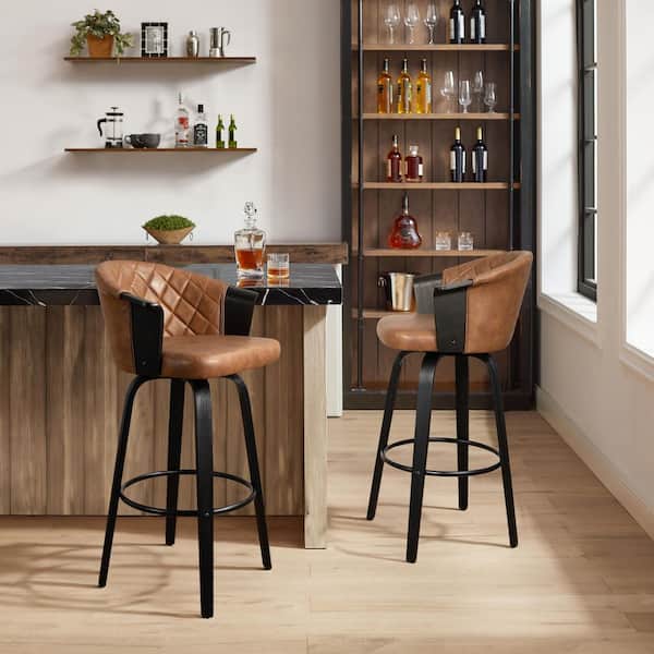 Iya 30.51 in. Brown Faux Leather Swivel Counter Stools with Metal/Wood Frame and Metal Footrest (Set of 2)