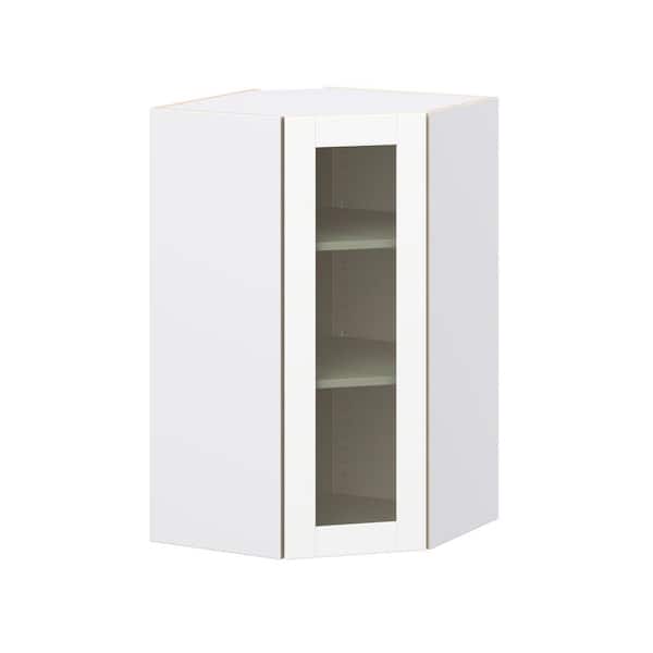 24 in. W x 14 in. D x 40 in. H Assembled Glass Door Diagonal Corner Kitchen Cabinet in Bright White