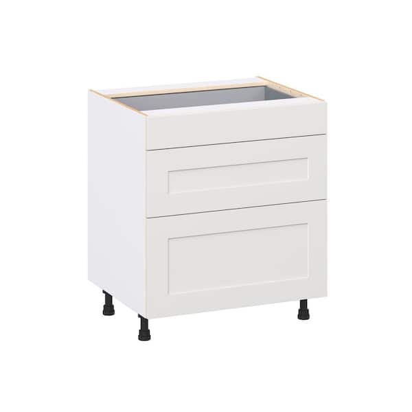 Roseland 30 in. W x 24 in. D x 34.5 in. H Assembled Shaker Drawer Base Kitchen Cabinet in Warm White with 3 Drawers