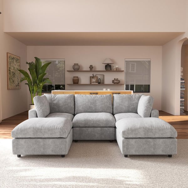 100.5 in. Square Arm Chenille 5-piece Modular Sectional Sofa Free Combination with Ottoman and Removable Covers in Gray