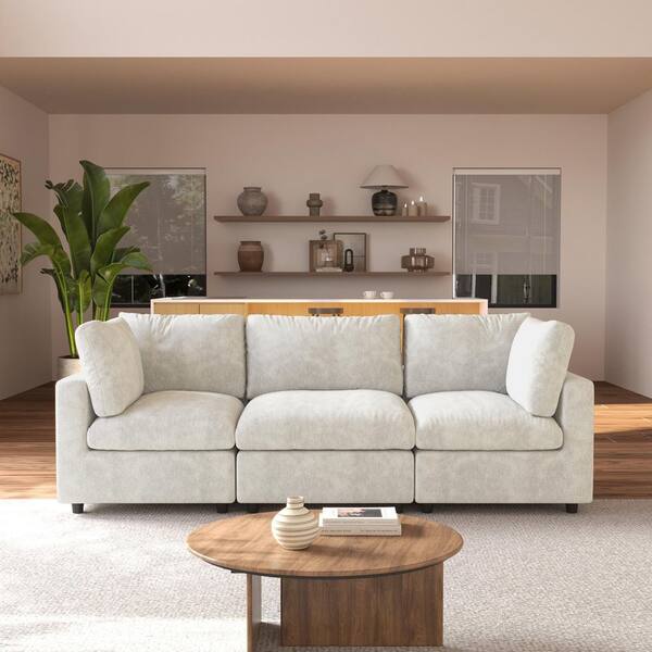 100.5 in. Square Arm Chenille Couch Modular Free Combination Sectional Sofa in Beige 3 Piece