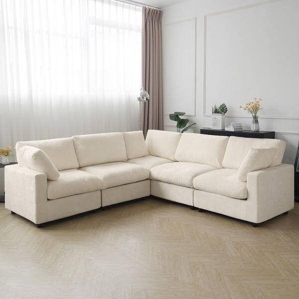 100.5 in. Square Arm Chenille Couch Modular Free Combination Sectional Sofa in Beige 5 Piece