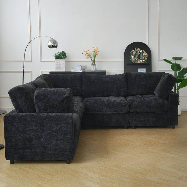 100.5 in. Square Arm Chenille Couch Modular Free Combination Sectional Sofa in Black 5 Piece