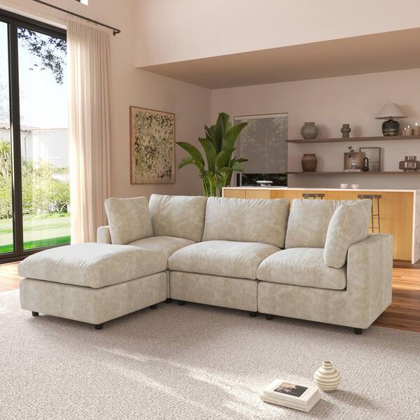 100.5 in. Square Arm Chenille Couch Modular Free Combination Sectional Sofa in Light Brown 4 Piece