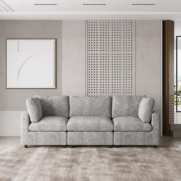 100.5 in. Square Arm Chenille Modular Sectional Sofa Couch with Removable Covers in Gray