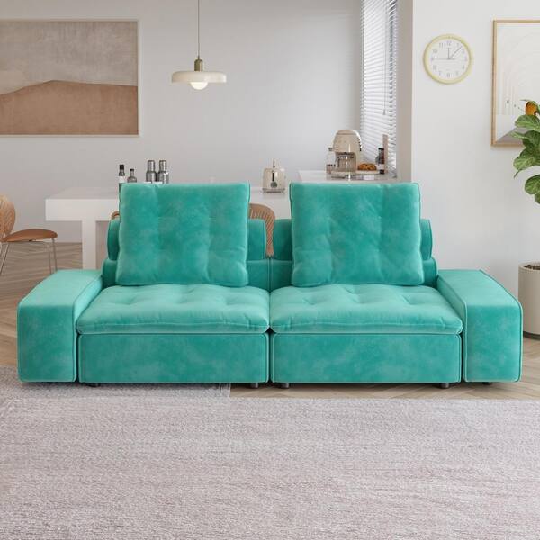 102 in Wide Square Arm Velvet Modular Deep Seat Loveseat Sofa Couch in. Blue