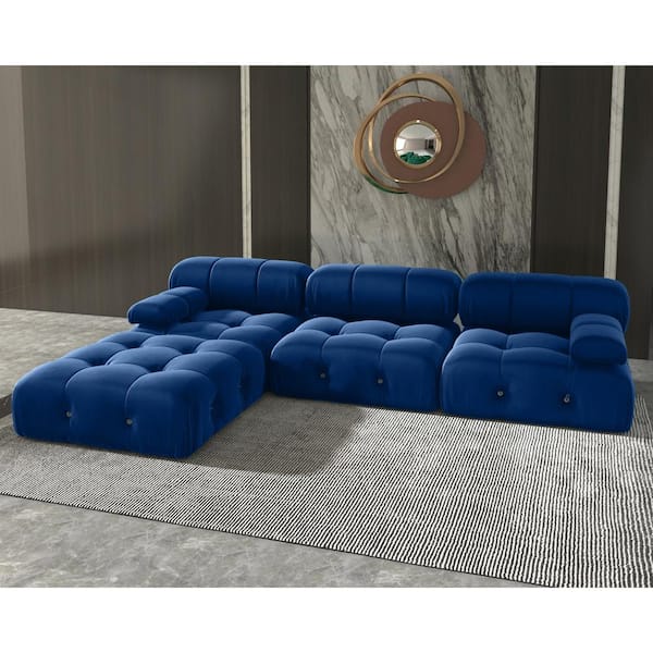 103.8 in. Square Arm Velvet 4-Piece L Shaped Modular Free Combination Sectional Sofa with Ottoman in. Blue