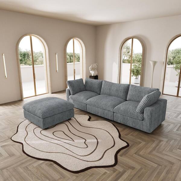 118.1 in. Rabbit Plush Fabric Square Arm 4-Piece Modular Free Combination Sectional Sofa in Gray