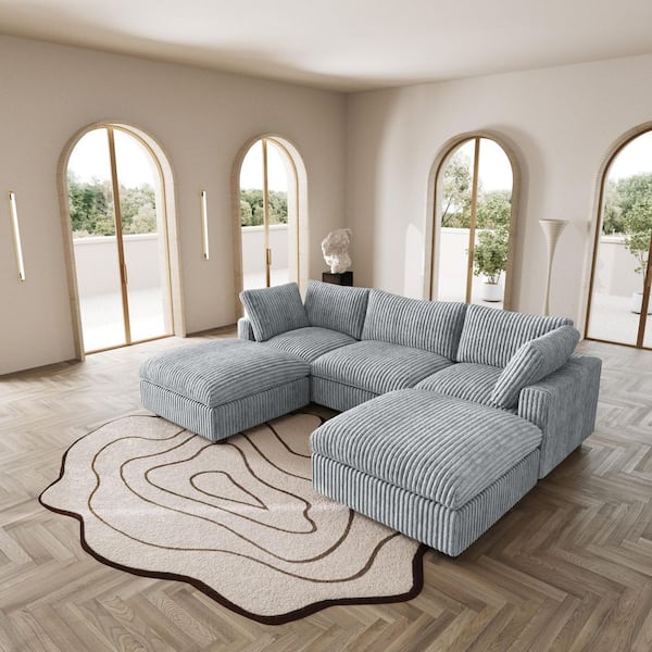 118.1 in. Rabbit Plush Fabric Square Arm 5-Piece Modular Free Combination Sectional Sofa in Gray