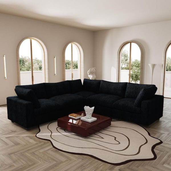 118 in. Rabbit Plush Fabric Square Arm 6-Piece Modular Free Combination Sectional Sofa in. Black