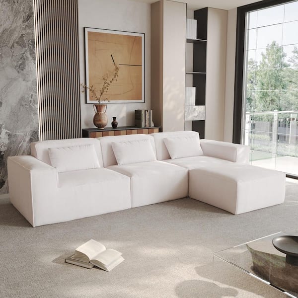 118 in. Square Arm Velvet Fabric L-Shaped Modular Sofa in Beige with Ottoman