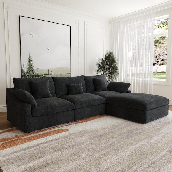 119.2 in. Slope Arm Linen L-shaped Oversized 4-Piece Modular Free Combination Sofa with Removerble Covers in. Black