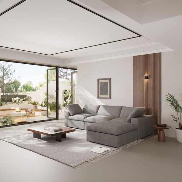 120.31 in. Square Arm Linen 4-Piece L Shaped Free Combination 4-Seater Sectional Sofa with Ottoman in. Gray