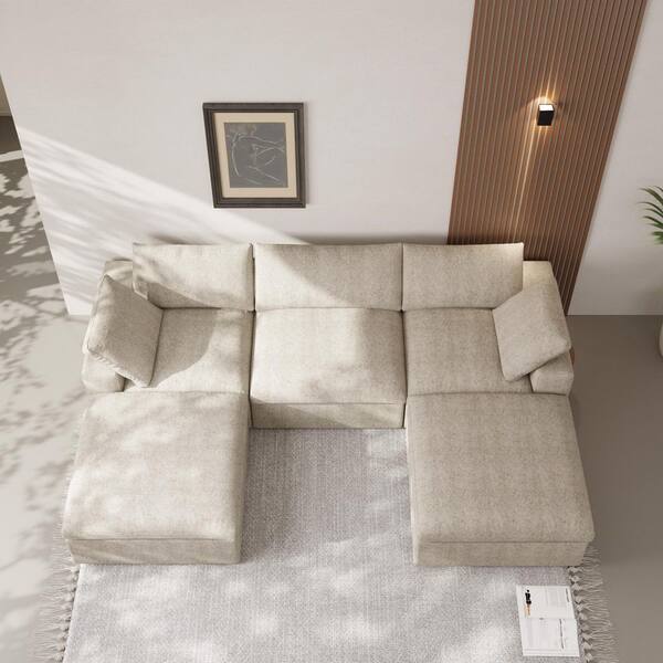 120.45 in. Square Arm 5-piece U Shaped Linen Velvet Sectional Sofa in. Brown with Storage Ottoman and Removable Covers