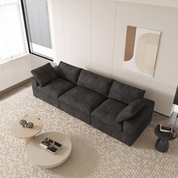 120.45 in. W Square Arm Linen Rectangle Modular Free Combination Sofa in. Black