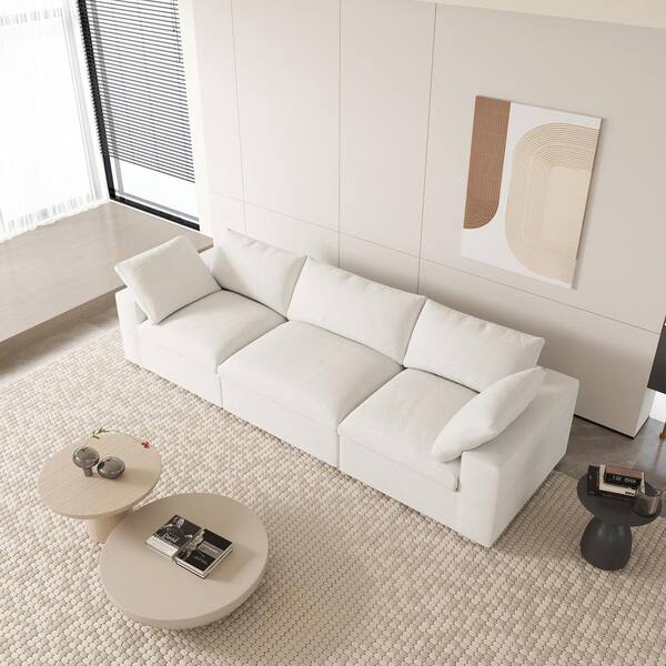 120.45 in. W Square Arm Linen Rectangle Modular Free Combination Sofa in. White