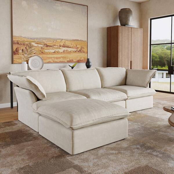 122.3 in. W Flared Arm Linen Modular 4-Piece Down-Filled Free Combination Sectional Sofa with Ottoman in Beige