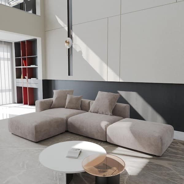 129.92 in. Square Arm Corduroy Velvet 4-Pieces Modular Free Combination Sectional Sofa with Ottoman in. Brown