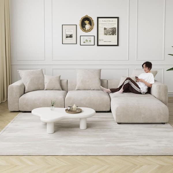 141.72 in. Square Arm Corduroy Velvet 4-Pieces Modular Free Combination Sectional Sofa with Ottoman in Beige