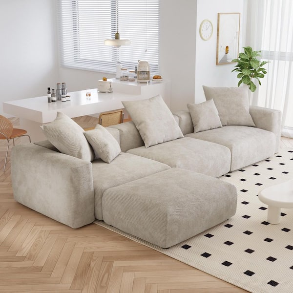 141.73 in. Square Arm Corduroy Velvet Rectangle Sofa in. Beige