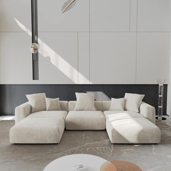 141 in. Square Arm Corduroy Velvet 5 Pieces U Shaped Modular Free Combination Sectional Sofa with Removable in. Beige