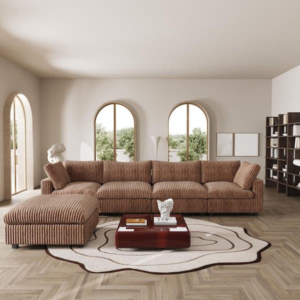 157.48 in. Rabbit Plush Fabric Square Arm 5-Piece Modular Free Combination Sectional Sofa in. Brown