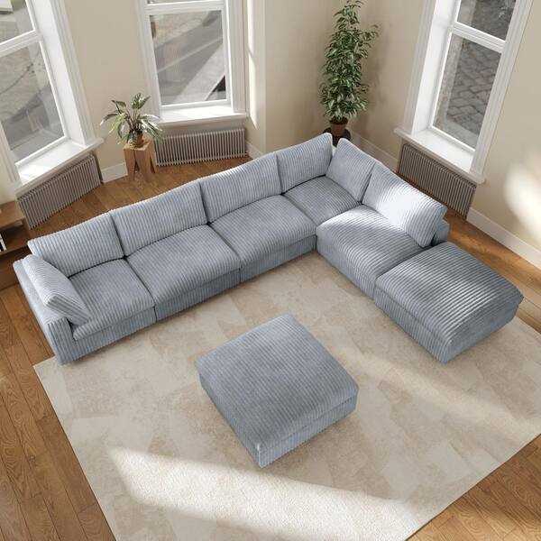 157.48 in. Square Arm 7-piece Rabbit Velvet Plush L-Shaped Living Room Sectional Sofa with Removable Cover in Gray