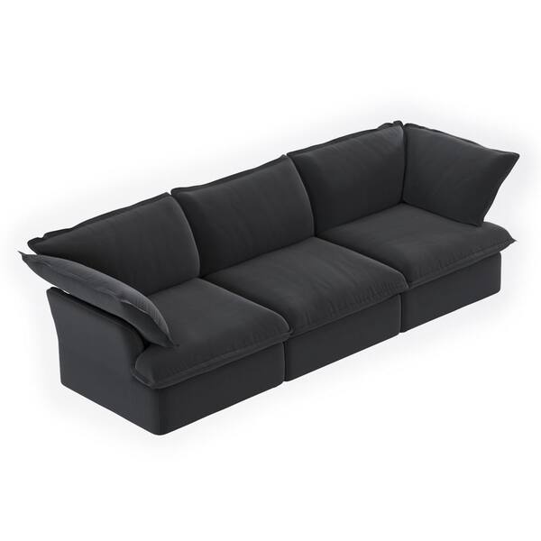 162.98 in Wide Flared Arm Linen Rectangle Modular Free Combination Sofa with Pillow in. Black