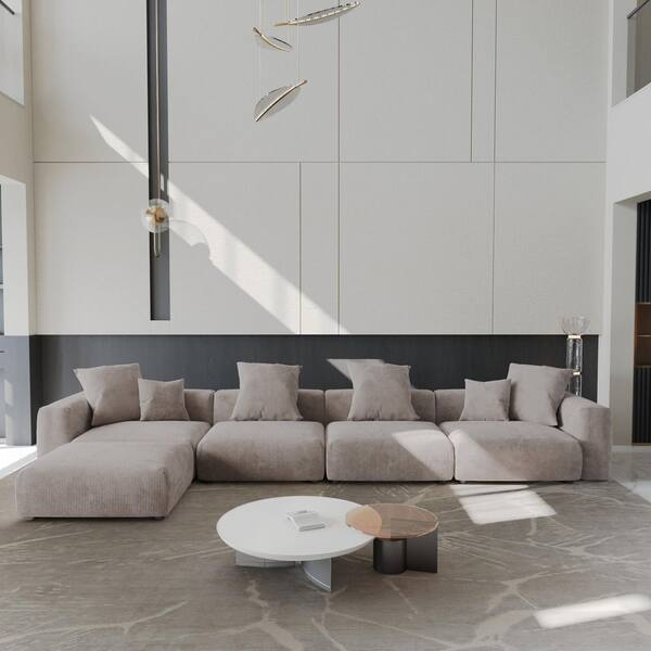 181.1 in. Square Arm 5-Piece Corduroy Modular Sectional Sofa in Brown with Removable Covers and Ottoman