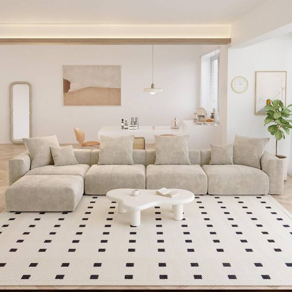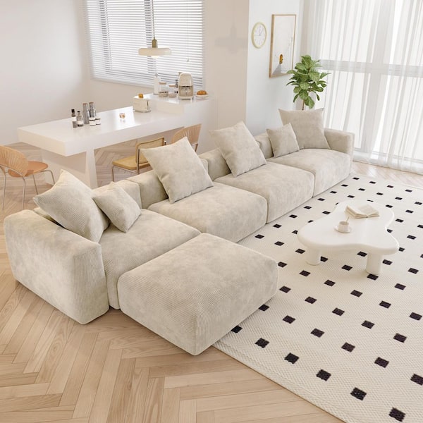 181.1 in. Square Arm Corduroy Velvet Rectangle Free Combination Sofa in. Beige