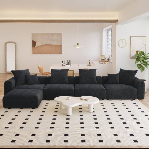 181.1 in. Square Arm Corduroy Velvet Rectangle Free Combination Sofa in. Black