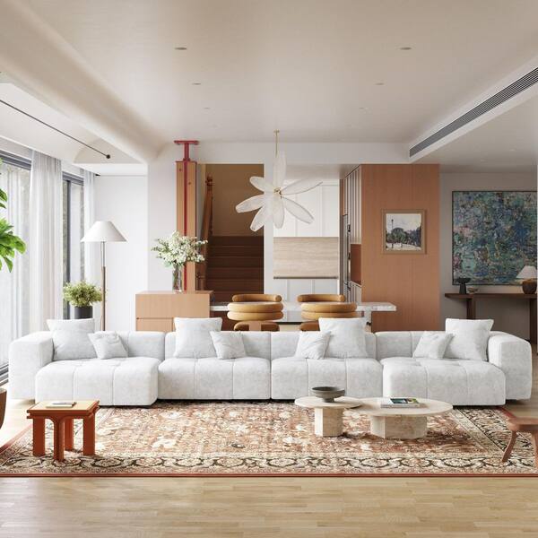 183.54 in. Square Arm Linen 6-piece Modular Free Combination Tufted Sectional Sofa with Soft Cushion, Ottoman in. White