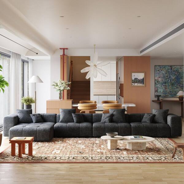 183.54 in. Square Arm Linen Oversized 5-piece Sponge Modular Free Combination Sectional Sofa with Soft Cushion in. Black