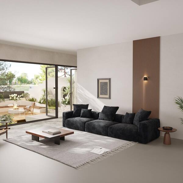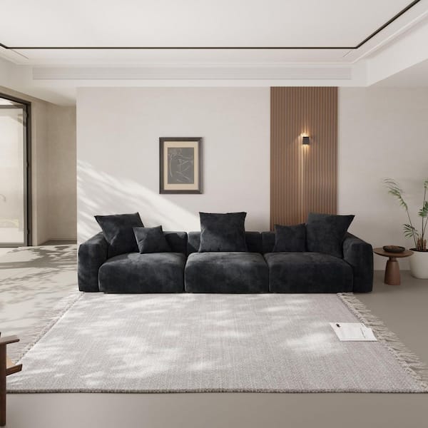 3-Piece Black 141 in. Corduroy Velvet Sofa with Removable Covers Living Room Set