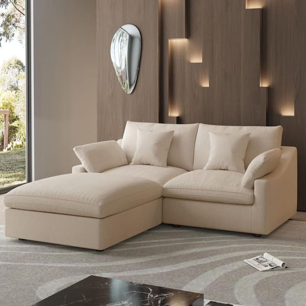 3-Piece Linen Modular Sectional Sofa Living Room Set Free Combination Couch Brown with Ottoman