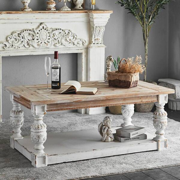 47.2in. Brown Rectangle Wood Tod Coffee Table with Shelves