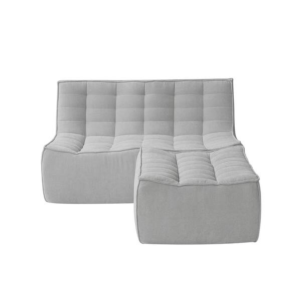55.12 in. W Armless Linen Polyester Waffle Modular Reclining Sofa in. Gray with Ottoman
