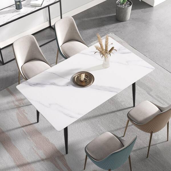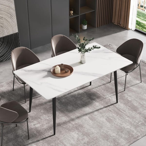 62.99 in. Rectangle White Sintered Stone Top with Black Metal Frame (Seats 4-6)