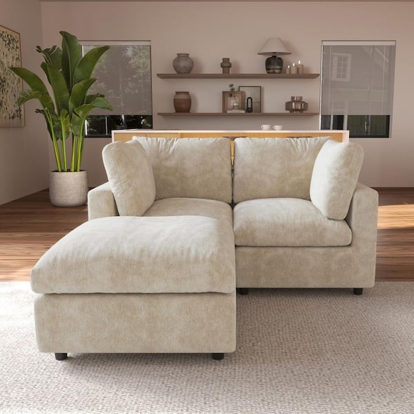 67 in. Square Arm Chenille 3-Piece Modular Sectional Sofa Free Combination with Ottoman and Removable Covers in Brown