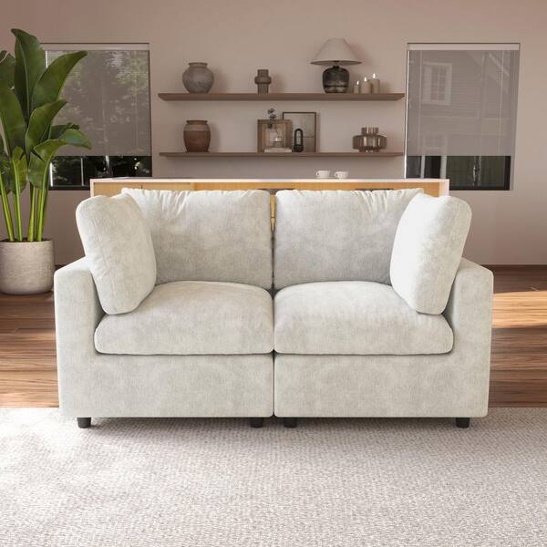 67 in. Square Arm Chenille Couch Modular Free Combination Sectional Sofa in Beige 2 Piece