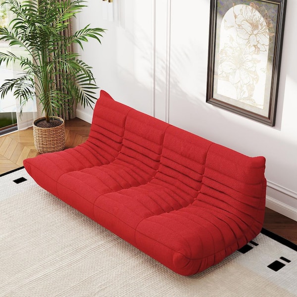 68.9 in. W Armless Modular Velvet 3-Seater Lazy Sectional Sofa in Red For Apartment And Balcony
