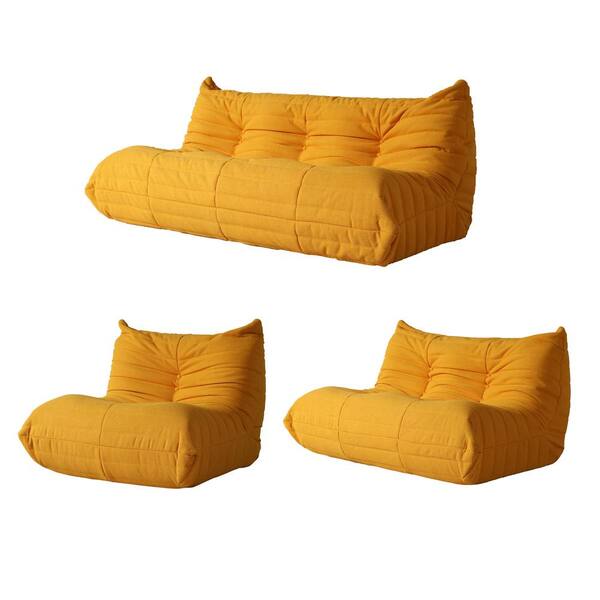 69 in. W Armless Teddy Velvet 3-piece Modular Free Combination Sectional Sofa with Ottoman in. Yellow