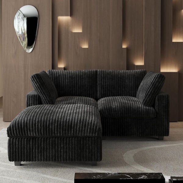 78.74 in. Rabbit Plush Fabric Square Arm 3-Piece L Shaped Modular Sectional Sofa in Black with Ottoman