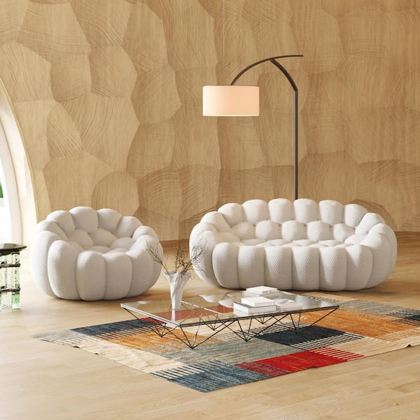 78.74 in. W Flared Arm 3D Knitted Polyester 2-piece Curved Modular Sectional Sofa in. Beige with Ottoman
