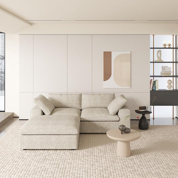 80.3 in. W Square Arm Linen Modular Free Combination Sofa with Storage Ottoman in. Brown