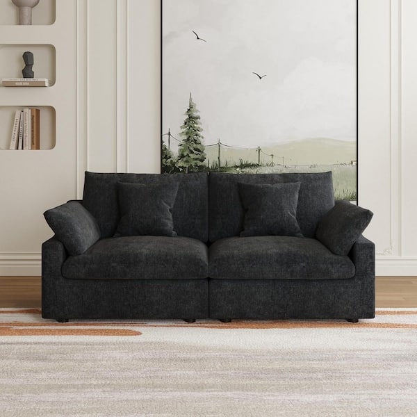 82.68 in. Slope Arm 2-Piece Rectangle Linen Modern Oversize Sectional Sofa Couch in Black